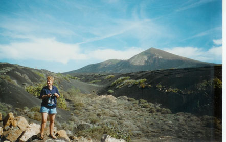 Audrey enjoying a walk in the hills of Fuerta Ventura. It was almost like the hills of home (Scotland) except blacker and a lot hotter.