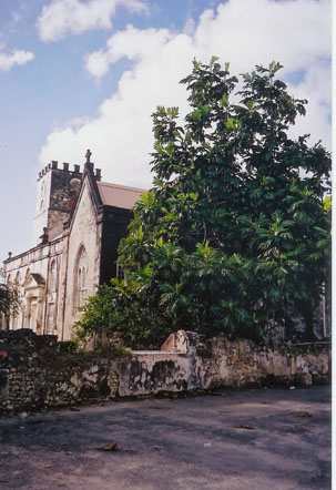 A typical English scene until you realise that the tree is a breadfruit, not an oak