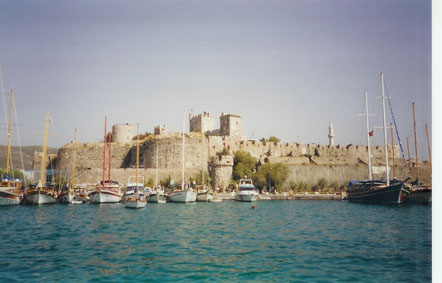 Last sight of Turkey - Leaving Bodrum harbour